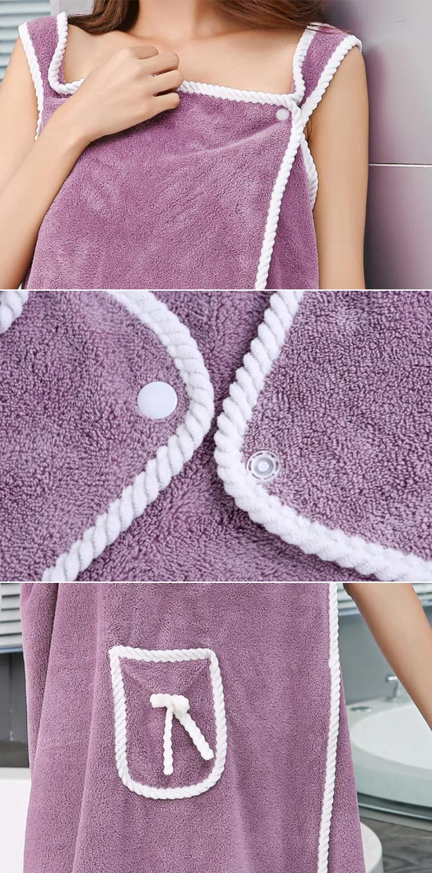 LUXURIOUS COMFORT: Crafted from premium-quality faux coral fleece fabric, our sleeveless bath towel provides a plush and velvety feel against your skin. Wrap yourself in its cozy embrace and experience the ultimate comfort as you unwind after a long day.