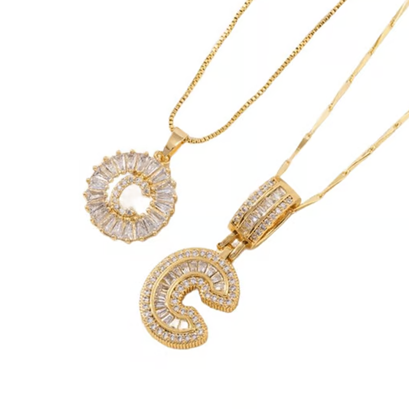A bold block initial pendant adorned with dazzling baguette crystals for a modern and eye-catching look.A classic round initial pendant with a radiant halo of sparkling stones for timeless sophistication.😍✨💕