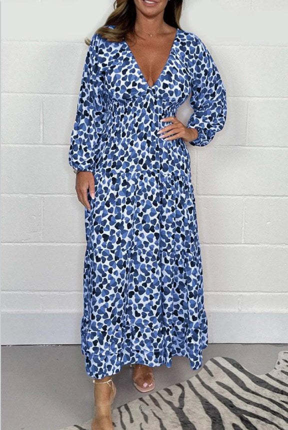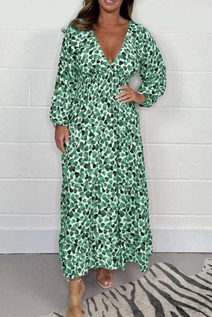 1 * Women Printed Sexy Deep V-neck Dress