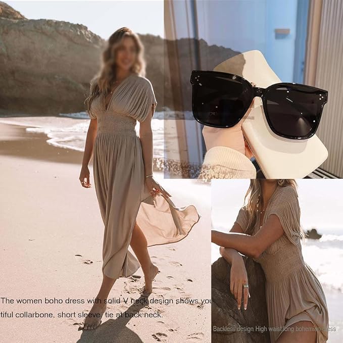 ✅The V-neck design elongates the neckline and enhances body proportions. Adjustable ties at the back allow for customizable coverage, offering versatility and breathability perfect for summer and beachwear.