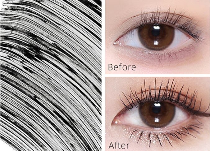 The metal tip is at a 50-degree angle with a constant width of 0.5mm, smoothly allows the mascara to coat each lash, volumizing, lengthening, and curling lashes without smudging, clumping, or fizzing.