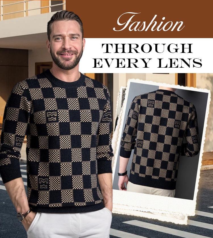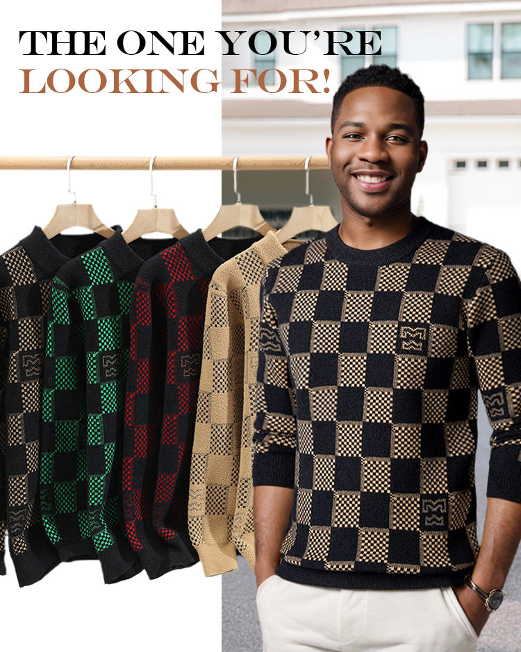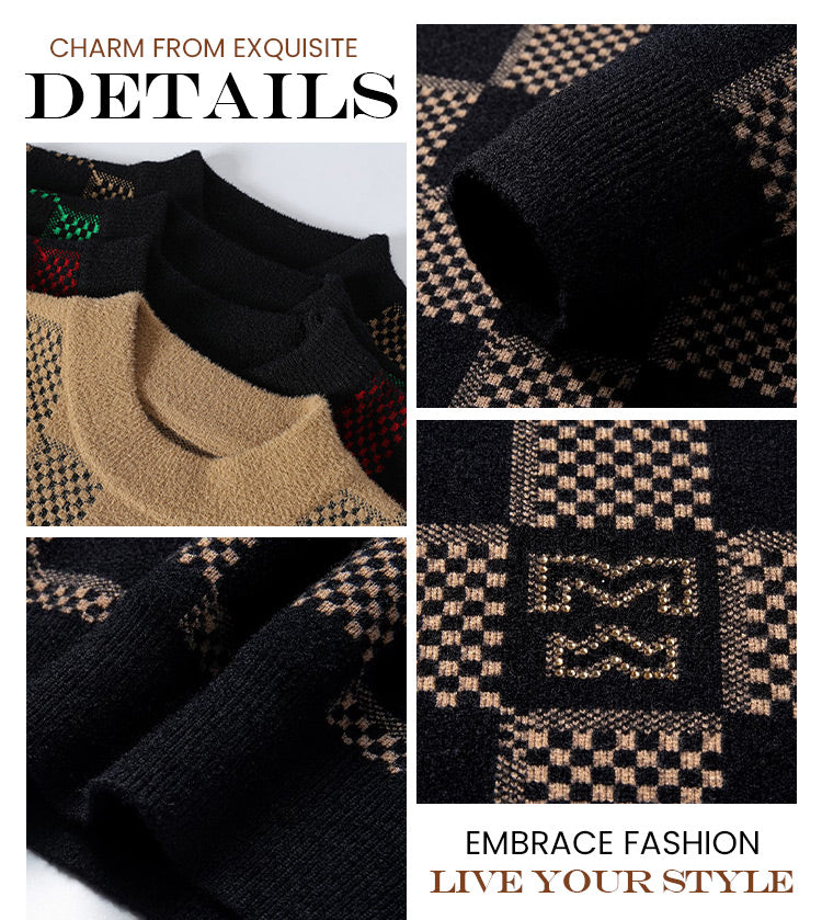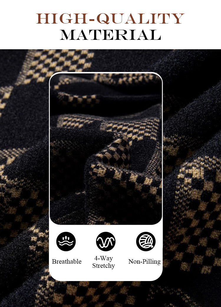 🔥New Year Promotion🔥Men's Checkered Printed Mock Neck Thickened Pullover Sweater