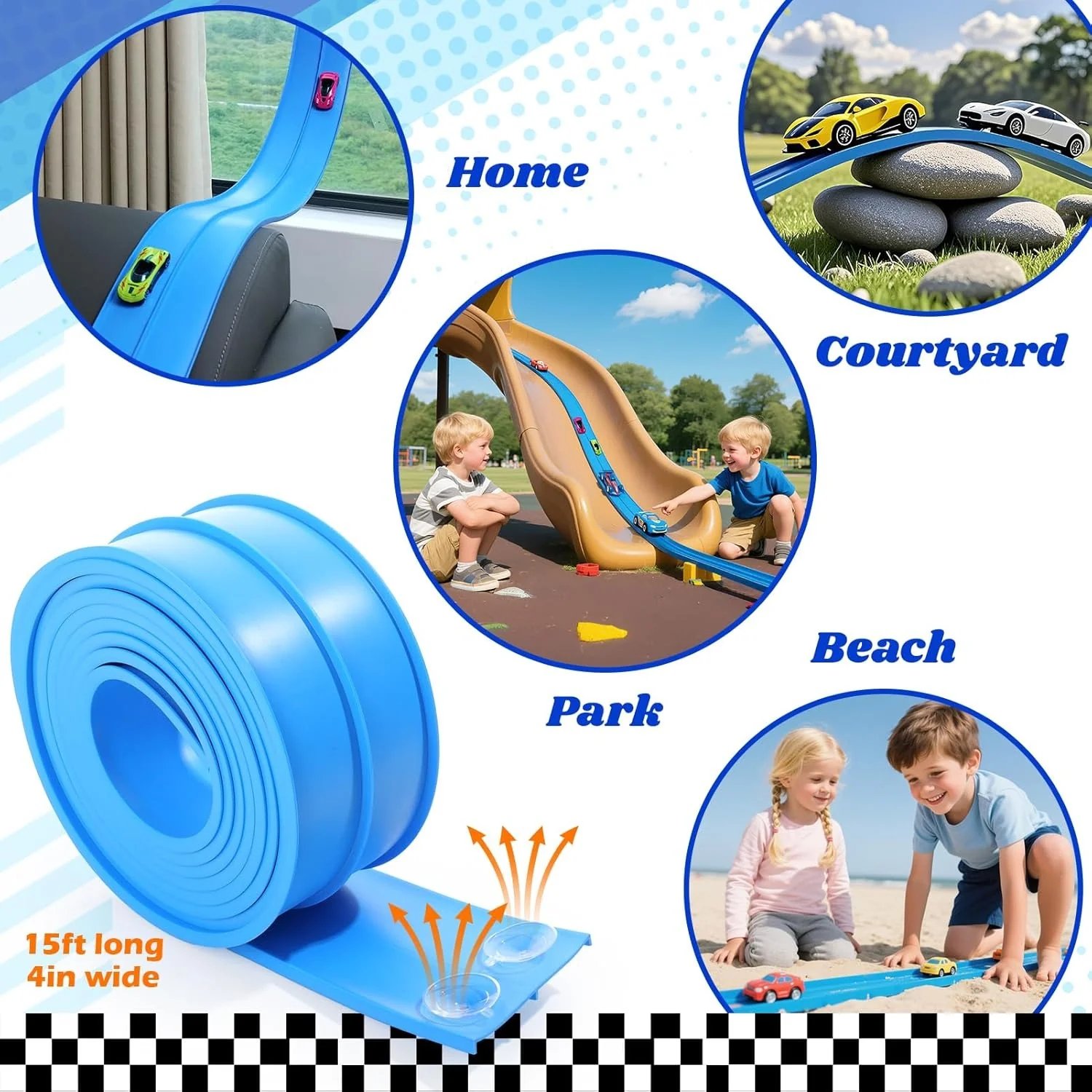 - Safe, Durable & Eco-Friendly - Made from child-safe, tear-resistant PE, the track withstands endless bending and high-speed crashes without breaking. Smooth edges and an easy-to-clean surface ensure safe, worry-free fun for years.