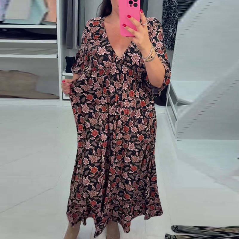A: The dress is designed with a relaxed silhouette for comfortable wear. We recommend checking our size chart for precise measurements, as it includes extended sizes up to 5XL.